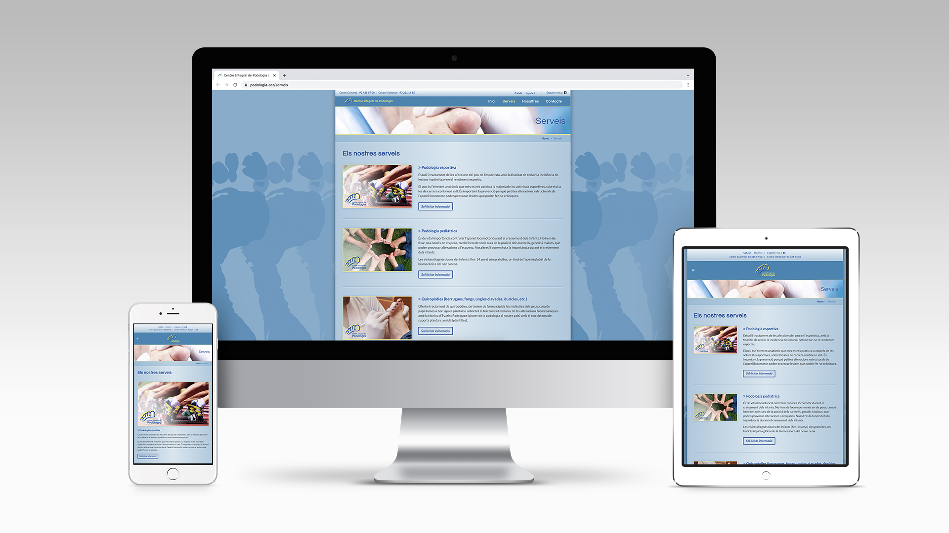 Disseny de la nova imatge corporativa del Centre Integral de Podologia, centre mèdic podològic a Barcelona. El procés creatiu inclou la conceptualització i el disseny del logotip i la programació del lloc web corporatiu (versió del 2013), adaptat amb un disseny responsiu per a dispositius mòbils.