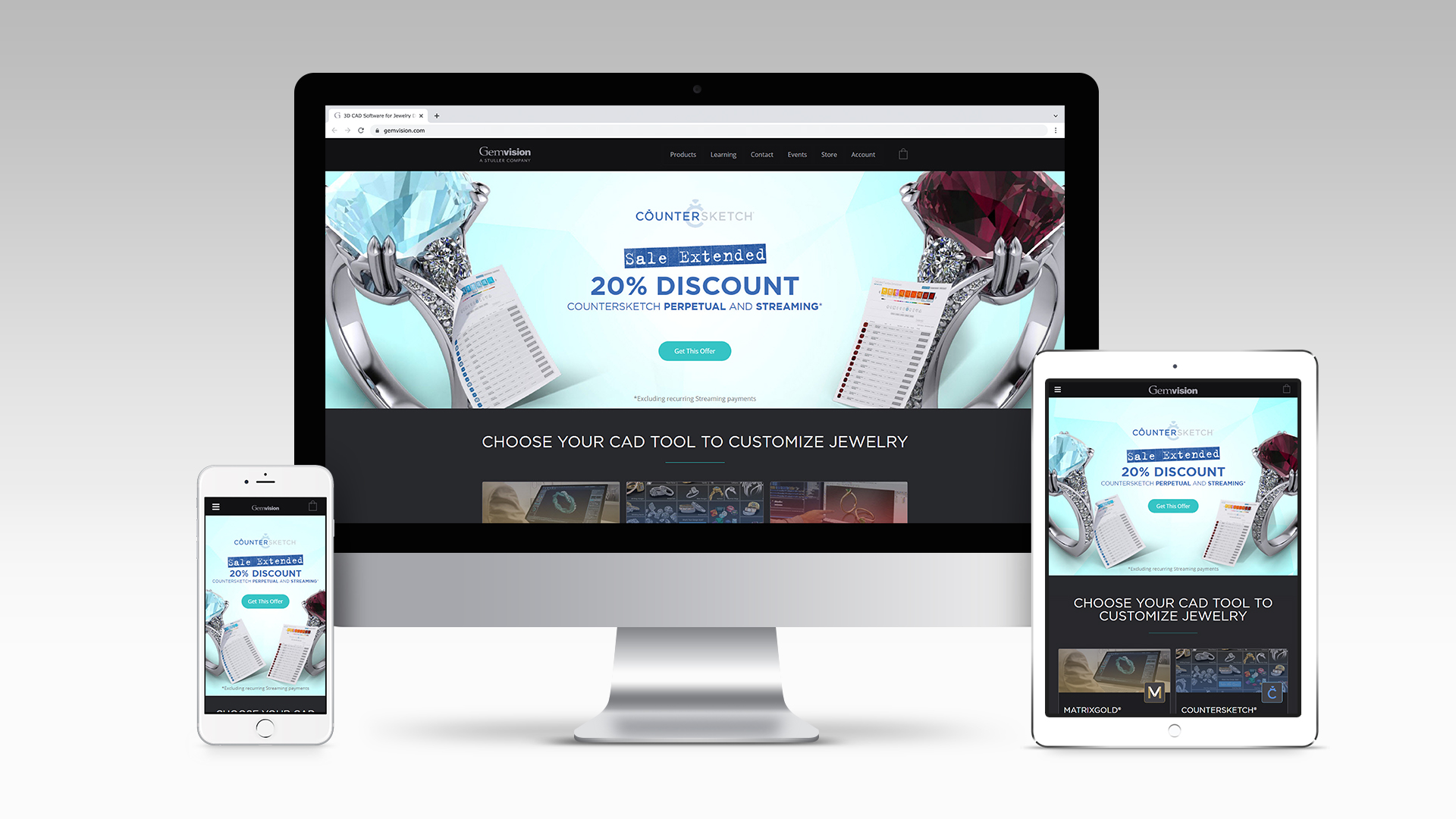 Gairebé tot el contingut visual ha estat creat i dissenyat utilitzant com a base imatges de joieria 3D renderitzades, creades digitalment amb el propi software Countersketch.